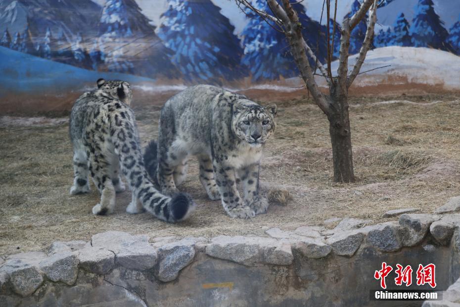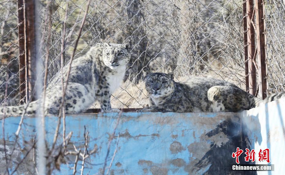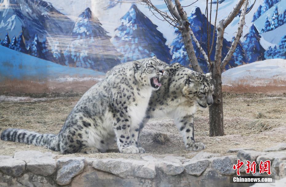 3月13日,青藏高原野生動物園雪豹館內(nèi),“傲雪”(左)陪伴21歲的“大豹”(右)享受春日暖陽。副園長齊新章介紹,為了雪豹的身心健康,2017年,動物園嘗試以科學(xué)、理性的技術(shù)將年幼的雌性“傲雪”和年老的雄性“大豹”合籠飼養(yǎng),發(fā)現(xiàn)“大豹”在“傲雪”的陪伴和帶動下,活動量明顯增加。據(jù)悉,2000年出生的“大豹”今年已21歲(相當(dāng)于人類105歲),突破雪豹的壽命極限值,且身體各項指標(biāo)穩(wěn)定。中新社記者 馬銘言 攝