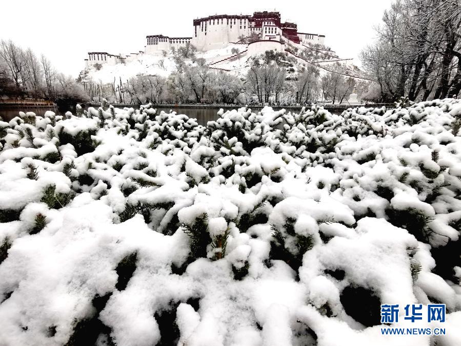 3月14日拍攝的雪中布達拉宮。新華社記者 覺果 攝