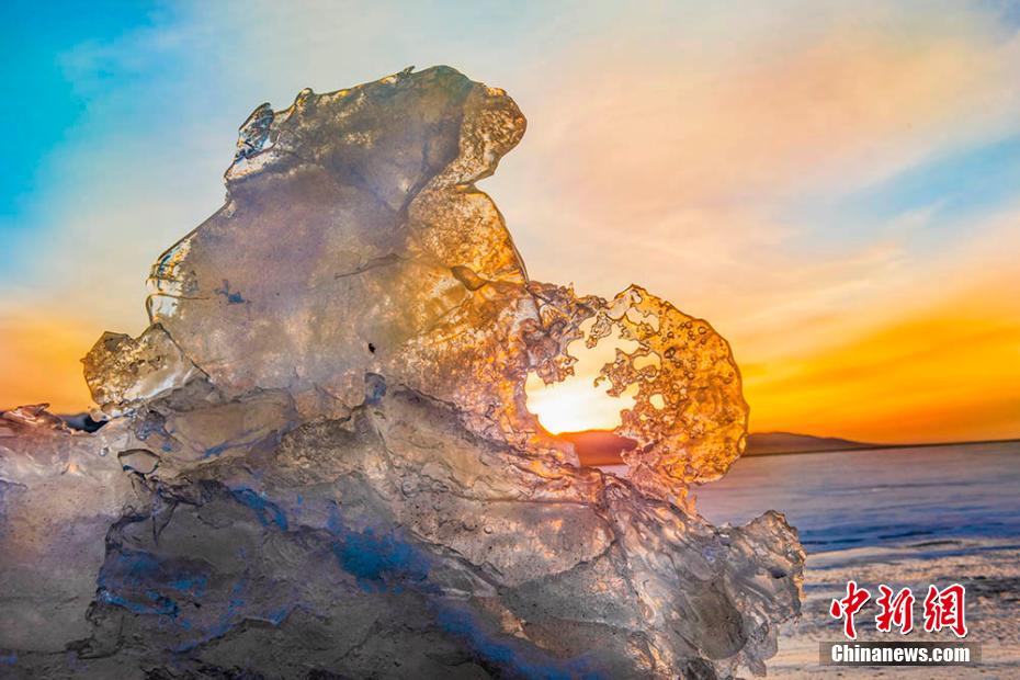 湖面上隆起的冰塊也在夕陽(yáng)照射下波光粼粼,勾勒出一幅絕美畫(huà)卷。趙海梅 攝