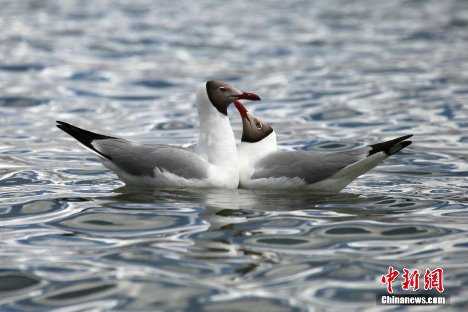 6月初,紅嘴鷗在西藏納木錯嬉戲。隨著氣溫逐漸升高,納木錯迎來旅游旺季。納木錯藏語意為“天湖”,是中國第三大咸水湖,位于藏北高原東南部,念青唐古拉山峰北麓,拉薩市當(dāng)雄縣和那曲市班戈縣境內(nèi),湖面海拔4718米。 中新社記者 陳小愿 攝