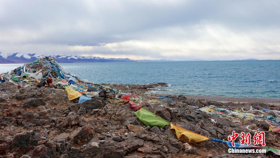 圖為納木錯湖邊的經(jīng)幡。冉文娟 攝