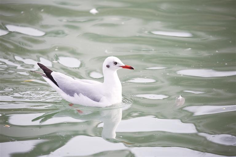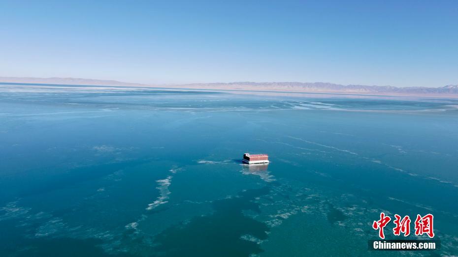 12月21日,航拍冬日青海湖。冬日青海湖周圍的積雪將湛藍的湖面包裹起來,不斷上凍的湖面猶如一面鏡子。(無人機照片) 中新社記者 李江寧 攝