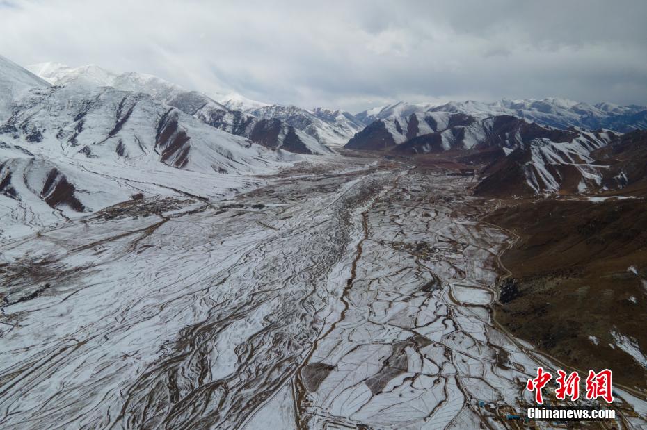 2月23日,航拍雪后山谷間的高原農(nóng)田。江飛波 攝