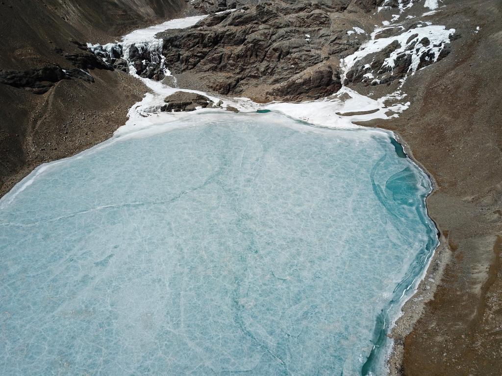 2022年3月27日拍攝的窮母崗日峰腳下的冰湖。(手機(jī)照片,新華社記者 沈虹冰 攝)