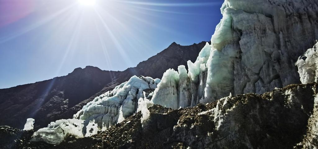2022年3月27日拍攝的窮母崗日峰腳下的冰川。(手機(jī)照片,新華社記者 沈虹冰 攝)