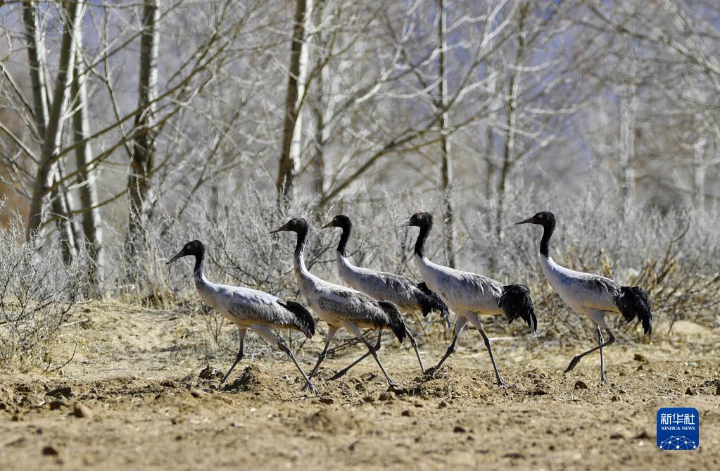 這是在南木林縣境內拍攝的黑頸鶴(3月29日攝)。新華社記者 張汝鋒 攝