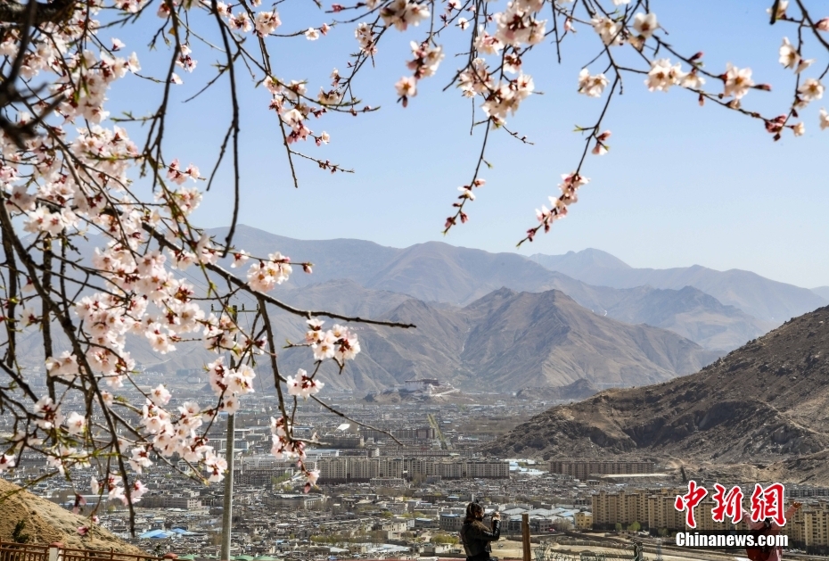 拉薩市中華文化公園里盛開的桃花。