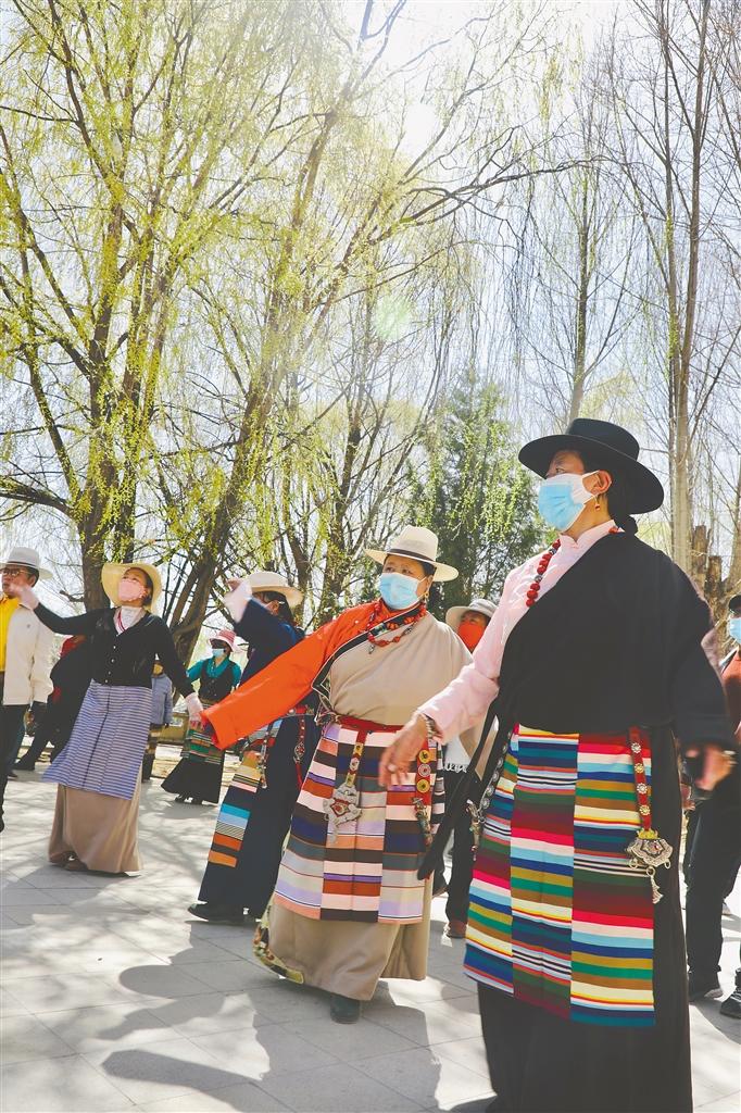 拉薩水上公園里跳舞的市民。