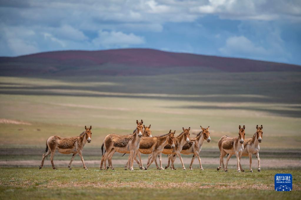 在雙湖縣境內(nèi)拍攝的藏野驢(7月16日攝)。新華社記者 晉美多吉 攝