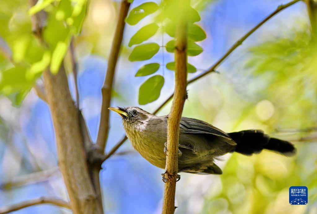 槐樹(shù)上的山噪鹛(9月21日攝)。新華社記者 張汝鋒 攝
