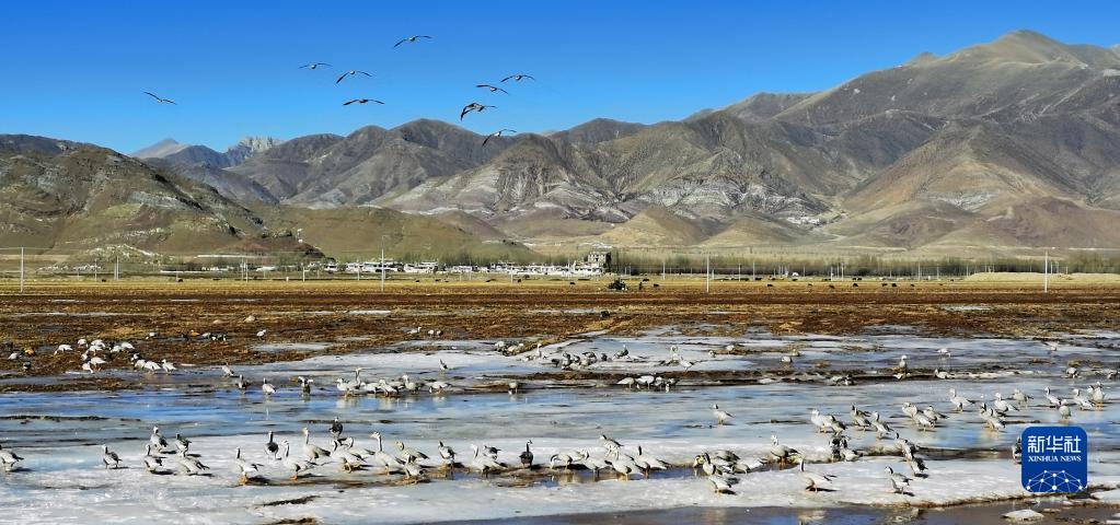 冬至過后,雪域高原進入一年中最寒冷的時段。在雅魯藏布江畔、拉薩河谷、高原湖泊和廣袤的田野里,大批越冬的候鳥自由自在覓食、翱翔,黑頸鶴、斑頭雁、赤麻鴨等候鳥的叫聲此起彼伏,在寒冬里奏響和諧生態(tài)交響曲。