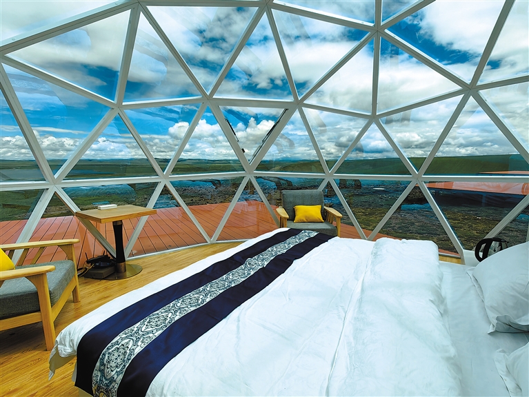 圖為夯錯濕地暗夜星空景區(qū)內(nèi)設置的觀景設備(8月25日攝)。新華網(wǎng)發(fā) 蘇思源 攝