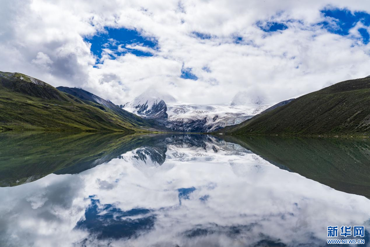佩枯錯(cuò)與遠(yuǎn)處雪山交相輝映(9月2日攝)。新華社記者 李鍵 攝
