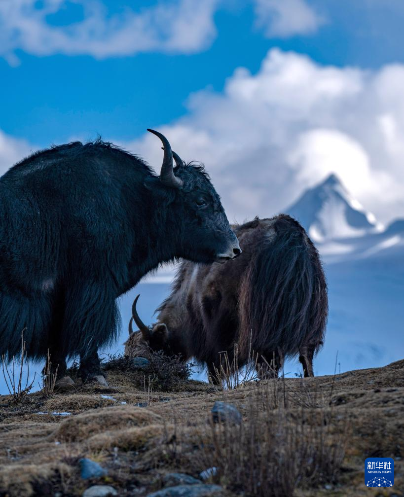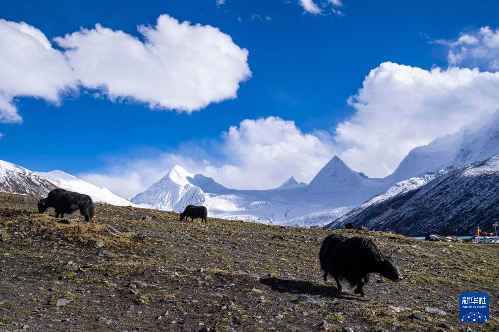 牦牛在薩普雪山腳下的草場上吃草(10月28日攝)。新華社記者 孫非 攝