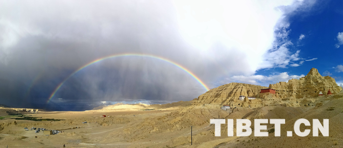 圖為古格王朝遺址與雙彩虹遙相呼應(yīng)。攝影:楊可揚(yáng)