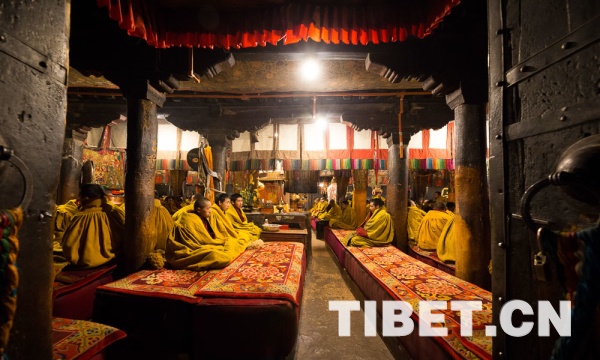 中國西藏網(wǎng)訊 1月28日,西藏自治區(qū)日喀則市歷代班禪駐錫地扎什倫布寺僧眾云集,誦經(jīng)聲響徹大殿,隆重舉行十世班禪大師圓寂30周年紀念法會。(中國西藏網(wǎng) 記者/趙耀 索朗加措)