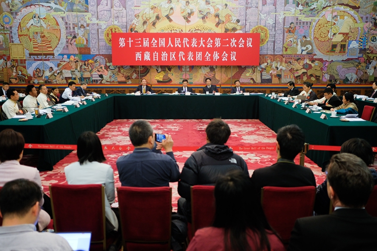 圖為3月6日全國人大西藏代表團開放日現(xiàn)場。圖片來源:中新社