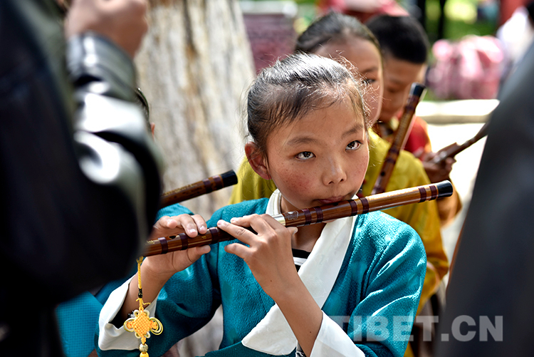 中國西藏網(wǎng)訊 6月16日,西藏自治區(qū)堆龍德慶區(qū)青少年活動中心春季課程展演活動在嗩吶演藝的《好漢歌》中拉開序幕。此時,羅布林卡藏戲演出臺前已聚攏了許多家長和市民。