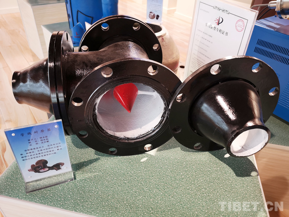 圖為楊永磊設(shè)計的管線耐磨器,直徑大,且設(shè)有分流錐、耐磨層,解決了粉劑介質(zhì)管線反復(fù)磨穿的問題 攝影:李元梅