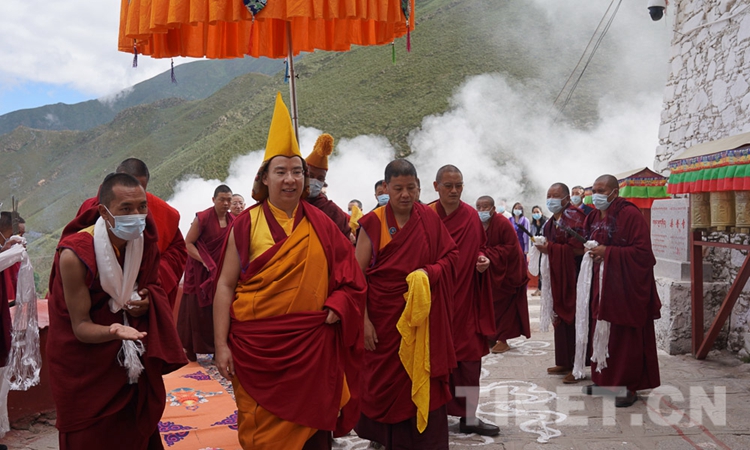 圖為十一世班禪在僧眾引領(lǐng)下走進熱堆寺 攝影:王淑