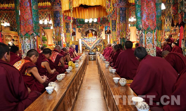 圖為十一世班禪在桑普寺誦經(jīng)祈愿 攝影:王淑