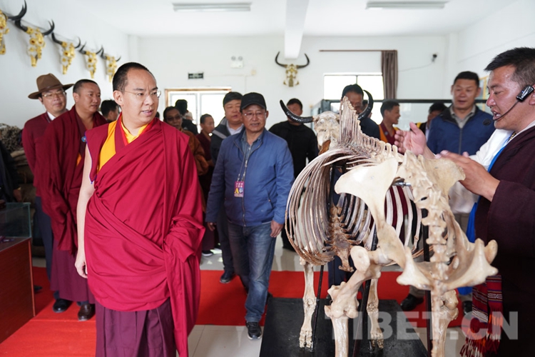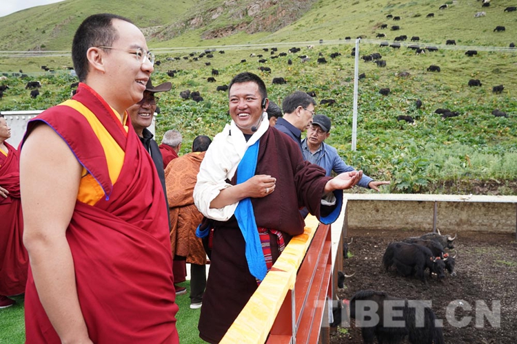 圖為十一世班禪聽取西藏娘亞牦牛養(yǎng)殖產(chǎn)業(yè)發(fā)展有限公司工作人員對(duì)娘亞牦牛的介紹 攝影:王淑