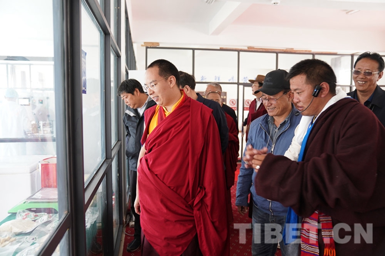 在調(diào)研中,十一世班禪關(guān)心的問題得到了很好的解答,他頻頻點(diǎn)頭表示贊許。從娘亞牦牛原種場(chǎng)了解到養(yǎng)殖基地的建成運(yùn)營(yíng)情況后,十一世班禪立刻趕往公司加工車間和銷售店,觀摩酥油、奶制品制作過程,了解銷售、帶動(dòng)牧民增收情況。十一世班禪希望公司能夠?qū)⒓卫璧淖匀粴夂?、土地條件等實(shí)際情況與科學(xué)實(shí)驗(yàn)相結(jié)合,樹立好家鄉(xiāng)民族特色品牌,為草原生態(tài)保護(hù)和畜牧業(yè)發(fā)展探索經(jīng)驗(yàn)。