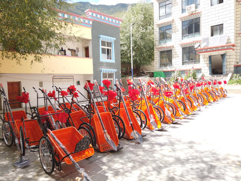 自2016年以來,協(xié)會已經(jīng)在西藏自治區(qū)拉薩、那曲、山南等地的10余個縣發(fā)放了4300多臺高原撿拾車,深受農(nóng)牧民群眾歡迎。北京建藏援藏工作者協(xié)會持續(xù)開展高原撿拾車捐贈項目。今年現(xiàn)場發(fā)放活動在昌都市的7個縣的9個鄉(xiāng)鎮(zhèn)進(jìn)行,分運到11個鄉(xiāng)鎮(zhèn),在洛隆縣新榮鄉(xiāng)還延伸白托村。截至2020年9月12日,所有補(bǔ)償配件發(fā)放完畢,項目圓滿完成。實際完成捐車數(shù)量2000臺,捐贈數(shù)量接近前3年的總和,創(chuàng)下了捐贈數(shù)量、惠及鄉(xiāng)鎮(zhèn)、種類豐富和現(xiàn)場志愿服務(wù)效果等多個“第一”。另有配套鐵鍬2000把、商品牛糞編織袋1萬條。中國農(nóng)業(yè)大學(xué)工學(xué)院贈送領(lǐng)車牧民的2000只旅行水杯也同時發(fā)放。