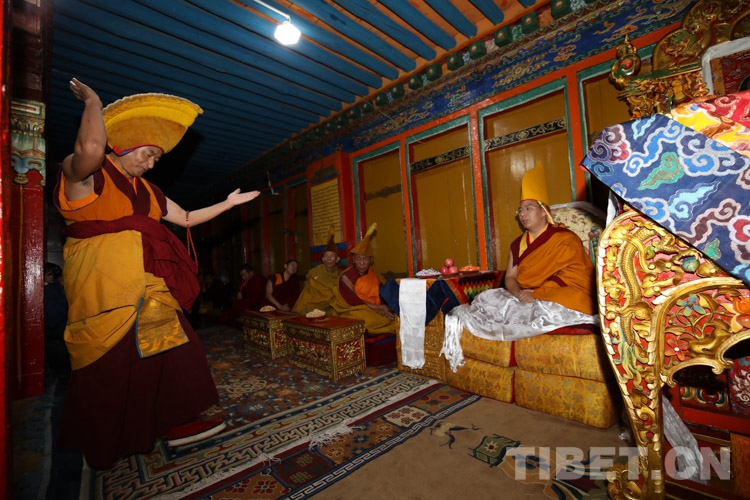 圖為十一世班禪在高級辯經(jīng)中 攝影:扎西