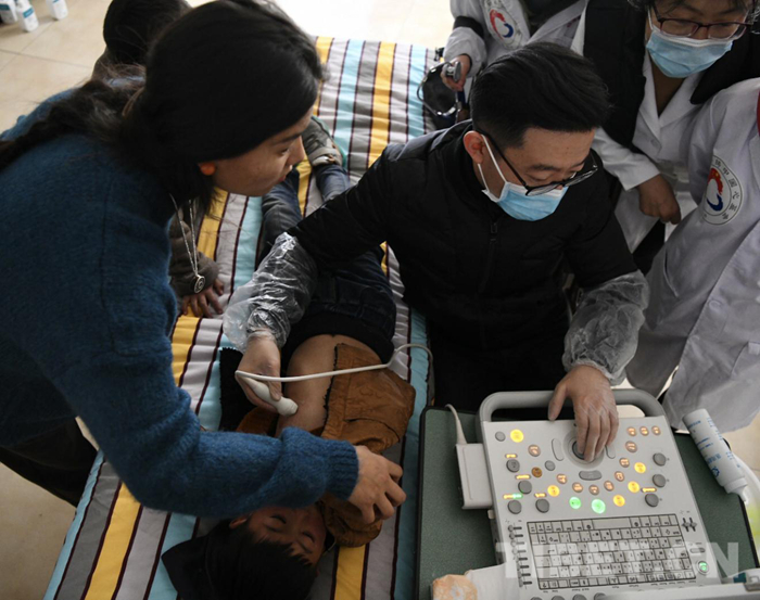 醫(yī)療隊(duì)和志愿者們不顧舟車勞頓和高原反應(yīng)的不適,認(rèn)真地對每一位前來篩查的小朋友進(jìn)行詳細(xì)的詢問和認(rèn)真的檢查。對于有疑似癥狀的患者則現(xiàn)場利用從北京帶來的先進(jìn)設(shè)備進(jìn)行彩超診斷,并耐心和每一位患者家屬進(jìn)行交流和講解,在每個(gè)工作細(xì)節(jié)上精益求精。