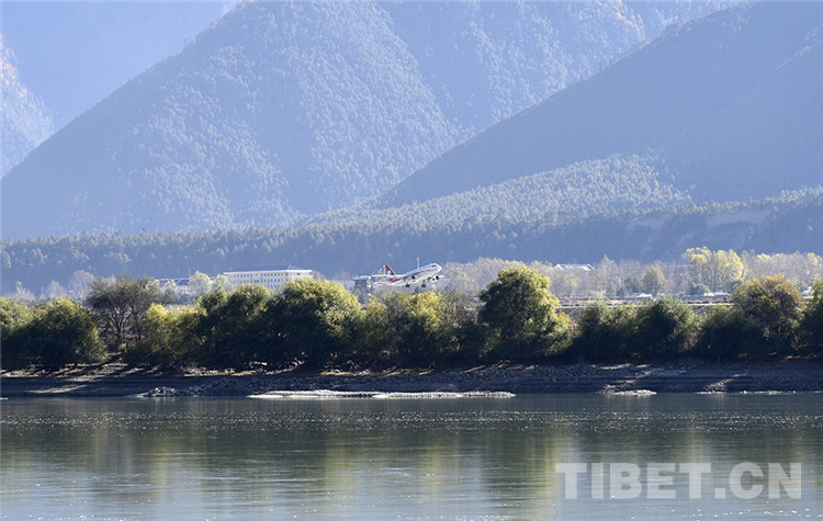 圖為一架飛機(jī)從西藏自治區(qū)林芝市米林機(jī)場(chǎng)起飛 攝影:王媛媛