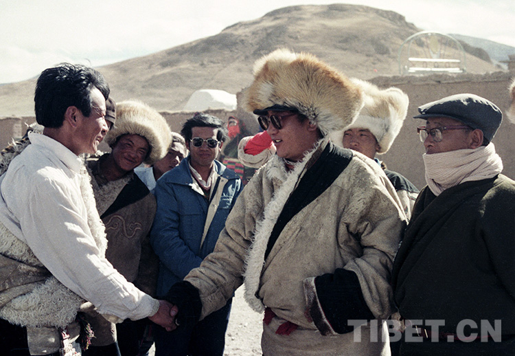 圖為率隊(duì)參加文部辦事處基層政權(quán)建設(shè)工作現(xiàn)場(chǎng)會(huì)的時(shí)任那曲地區(qū)行署專員土登才旺(中)與文部辦事處干部交流(唐召明1989年12月28日攝)