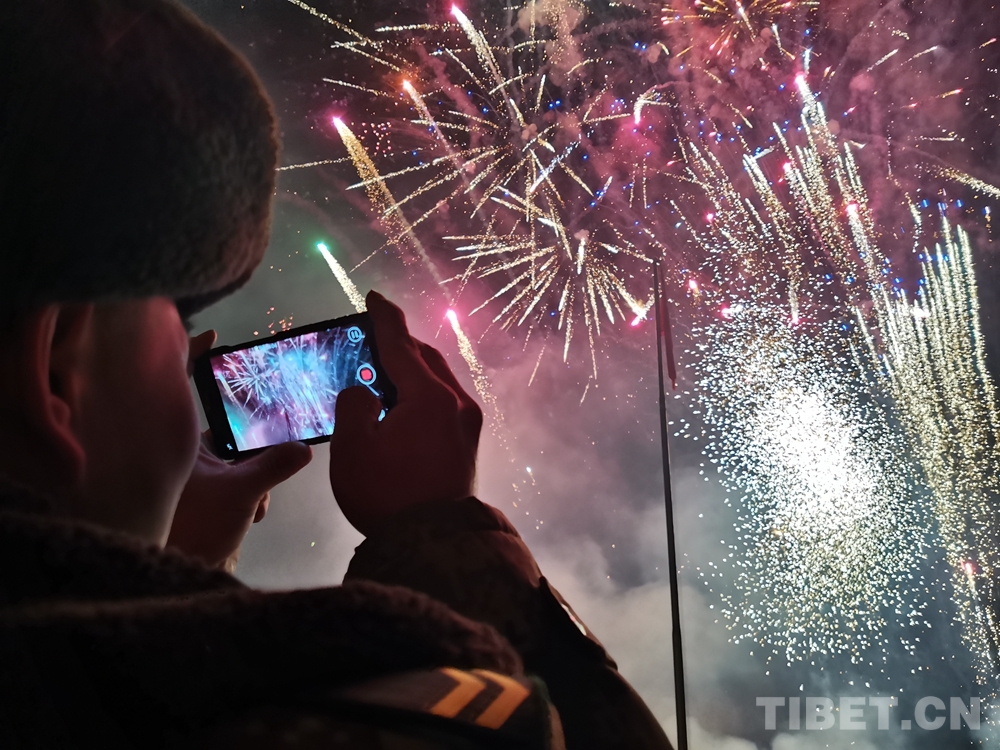 圖為駐藏部隊(duì)官兵錄一段煙花秀,分享給父母,說一聲:“爸,媽,我想你們了!” 攝影:牛玉壯