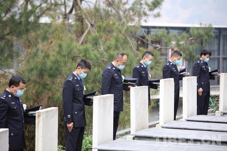 “因?yàn)槲覀冇颜x橋執(zhí)勤點(diǎn)處于疫情防控一線,我們沒有到烈士陵園實(shí)地打掃,今年的祭掃改為網(wǎng)絡(luò)祭掃,民警們通過國家公祭網(wǎng)祭掃通道開展‘追思?xì)v史、忠誠履職’活動?!痹撜居颜x橋執(zhí)勤點(diǎn)黨支部副書記尼瑪云丹說。