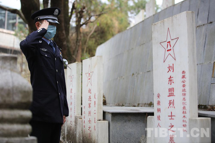 圖為西藏聶拉木出入境邊防檢查站民警到樟木烈士陵園開展清明節(jié)祭奠革命先烈活動 攝影:索朗次仁