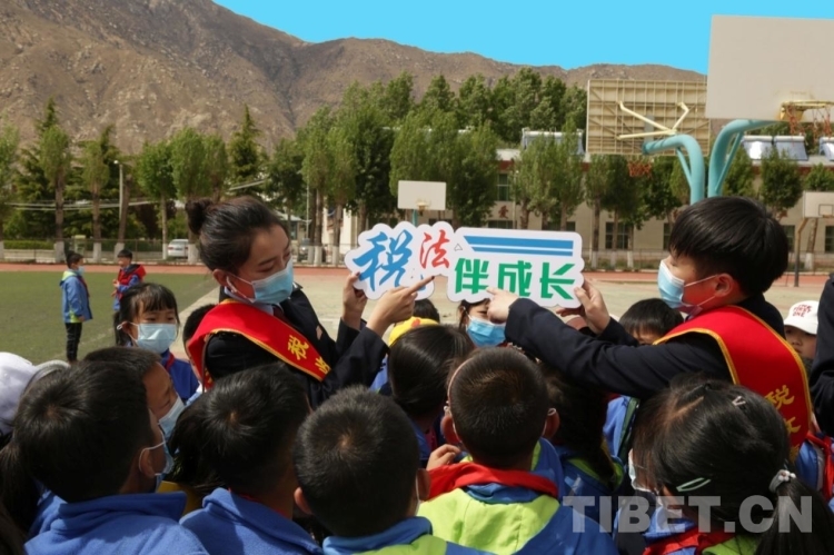 圖為西藏稅務(wù)干部在小學(xué)宣傳稅收知識(shí)
