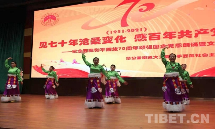 5月23日是西藏和平解放70 周年紀(jì)念日。23日上午,由西藏自治區(qū)拉薩市蔡公堂街道和西藏社會主義學(xué)院共同舉辦的紀(jì)念西藏和平解放70周年頌祖國、念黨恩朗誦暨文藝表演活動舉行?,F(xiàn)場鮮花嬌艷,燈光炫目,旋律悠揚(yáng),歌聲嘹亮。
