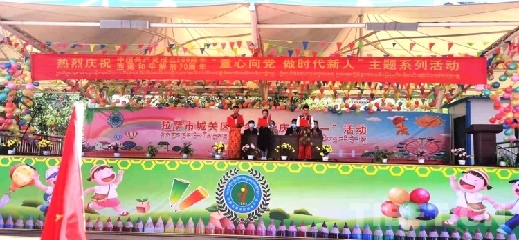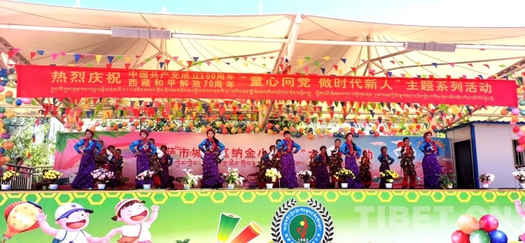 圖為西藏自治區(qū)拉薩市城關(guān)區(qū)納金小學(xué)“童心向黨、做時(shí)代新人”六一兒童節(jié)活動(dòng)現(xiàn)場(chǎng)