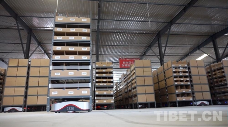 圖為西藏自治區(qū)級公共物流倉儲配送中心里,搬運型機器人“地狼”投用