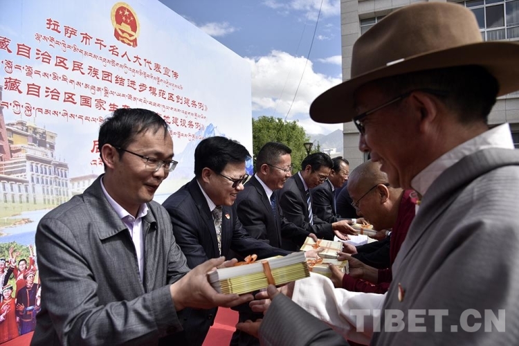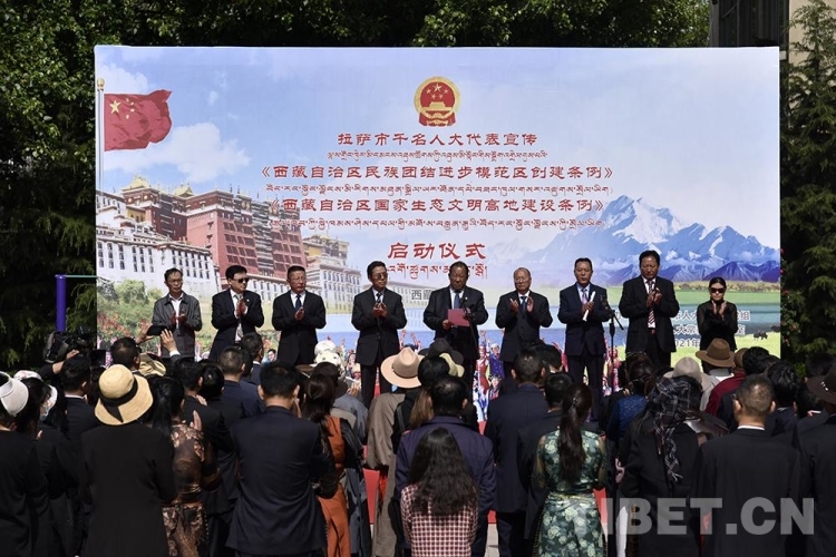 中國西藏網(wǎng)訊 6月9日上午,拉薩市千名人大代表(包括自治區(qū)、市、縣、鄉(xiāng)四級人大代表)宣傳《西藏自治區(qū)民族團結(jié)進步模范區(qū)創(chuàng)建條例》和《西藏自治區(qū)國家生態(tài)文明高地建設(shè)條例》(以下簡稱兩個《條例》)工作正式啟動。