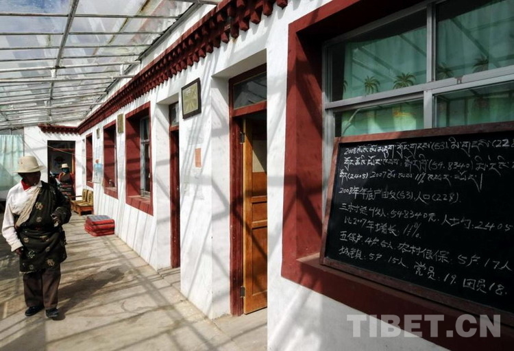 走進村委會的玻璃式采暖房,首先映入眼簾的是申扎縣委頒發(fā)的“安全文明村”金色牌匾,以及藏漢文兩種文字的學(xué)習(xí)墻報。