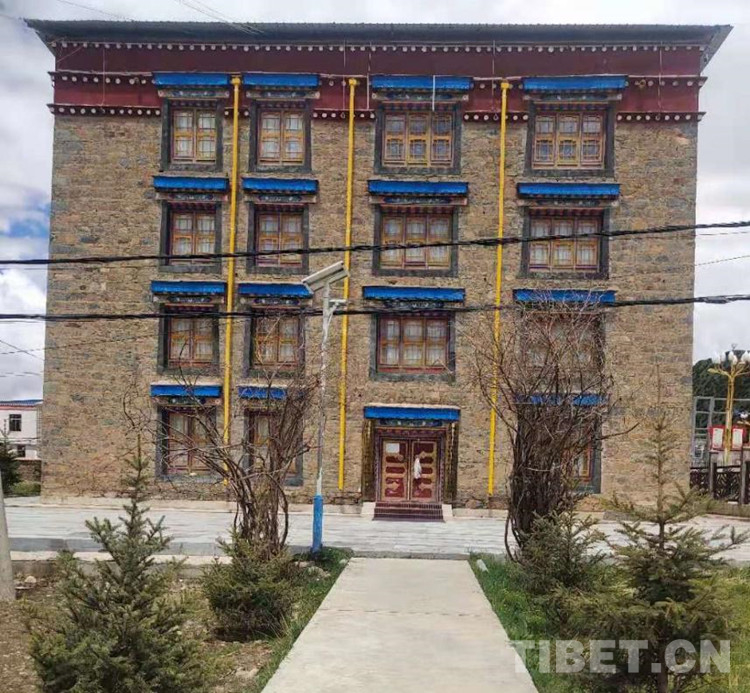 駛?cè)刖G意盎然的嘉黎縣,穿過(guò)繁華有序的人民東路,眼前映入飄著五星紅旗的大門,里面矗立著兩棟大樓,一棟為現(xiàn)代化大樓,另一棟為傳統(tǒng)藏式建筑。