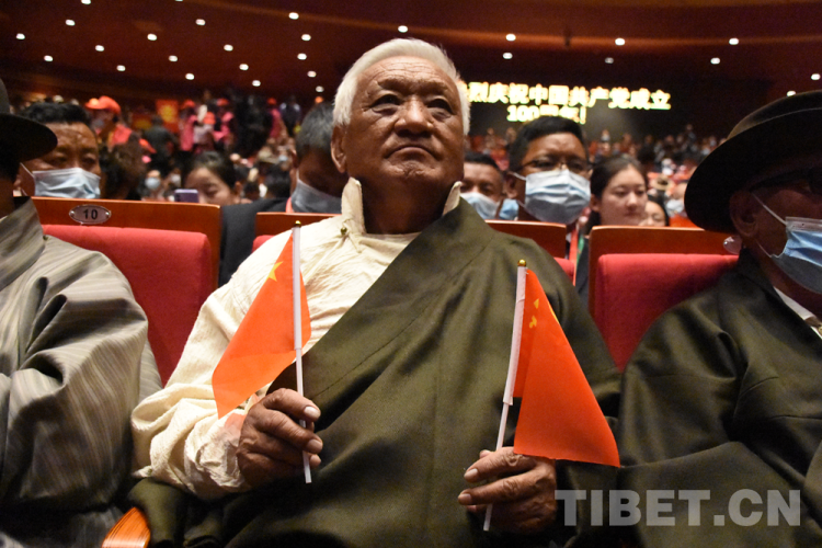 圖為來自日喀則市嘎玉林老黨員丹增在看演出 攝影:次旦拉姆