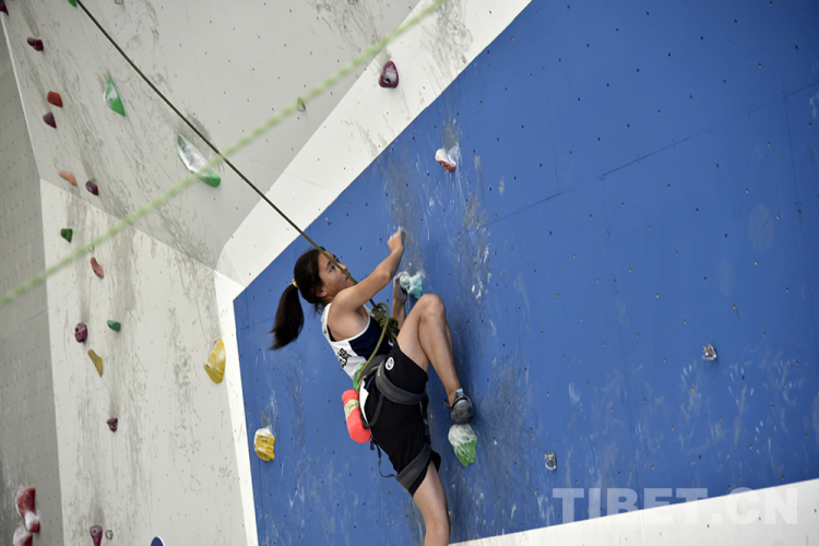 圖為專業(yè)運(yùn)動員進(jìn)行攀巖表演 攝影:王媛媛