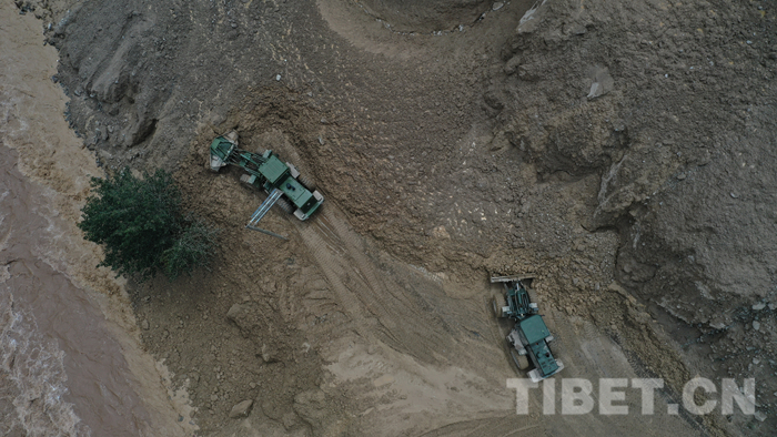 圖為該支隊(duì)救援官兵正在對(duì)川藏線怒江溝泥石流災(zāi)害進(jìn)行清理
