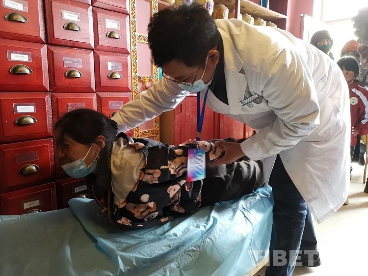 此次義診,另一個熱門科室便是骨科。無論何時,骨科永遠(yuǎn)人滿為患。負(fù)責(zé)骨科的柳揚醫(yī)生是高反最嚴(yán)重的,同時也是出診任務(wù)最重的。常常忙了一上午都顧不上吸一口氧氣,全憑堅強的意志支撐著。由于牧民們游牧?xí)r生活的帳篷條件艱苦,長期潮濕寒冷的環(huán)境導(dǎo)致腰酸背痛、大骨節(jié)病頻發(fā)。為了既解除病人的痛苦,又為他們節(jié)省花費,柳揚醫(yī)生不厭其煩,一遍遍地教病人做“小燕飛”等幫助身體修復(fù)的動作,他說:“通過功能鍛煉,可以改善疼痛,對于恢復(fù)身體機能也有很大意義。”