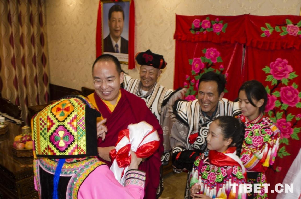 調(diào)研期間,班禪來到松潘縣進安鎮(zhèn)居民王永明的家中。班禪在一家人的圍繞中,仔細(xì)詢問家庭收入、生活情況并親切地向他家的小女兒說:“要繼續(xù)努力學(xué)習(xí),將來努力報效祖國,好不好?”班禪隨后表示,現(xiàn)在的生活越來越好,黨和政府為大家提供了很多機會,機遇多、機會多。能趕上這么好的一個偉大時代,也是我們大家的福報。