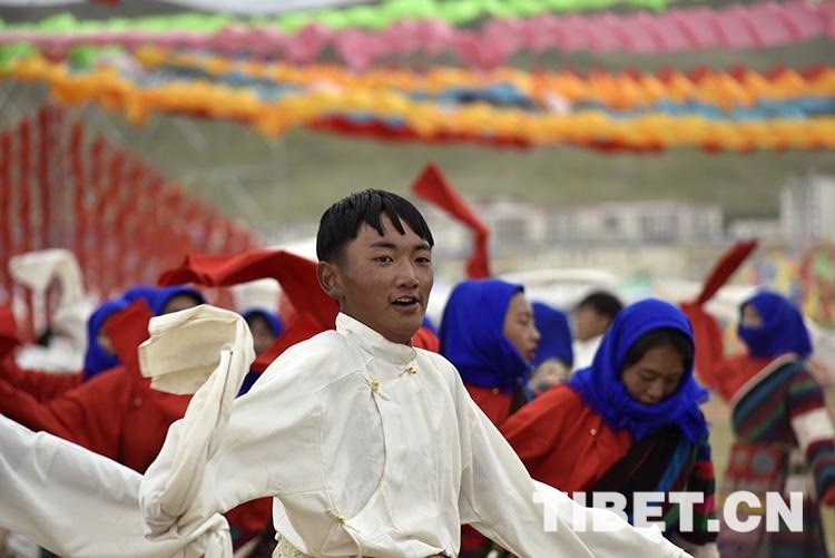 圖為7月25日,班戈縣第七屆納木錯文化旅游民俗風(fēng)情賽馬藝術(shù)節(jié)開幕式上的文藝表演 攝影:趙耀