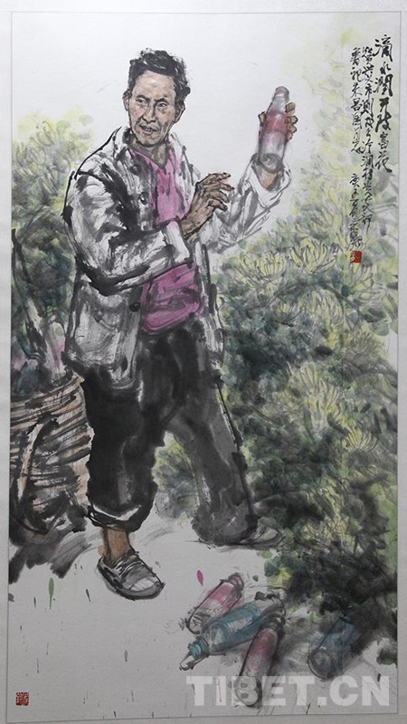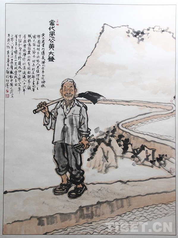 圖為中國畫作品《黃大發(fā)——遵義市播州區(qū)平正仡佬族鄉(xiāng)團(tuán)結(jié)村名譽(yù)村支書》,作者錢文觀