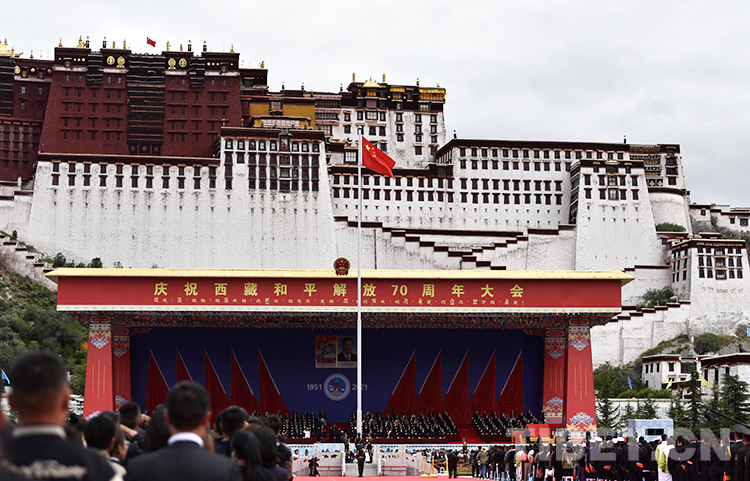 圖為8月19日上午,西藏各族干部群眾歡聚在布達(dá)拉宮廣場(chǎng),熱烈慶祝西藏和平解放70周年 攝影:王媛媛